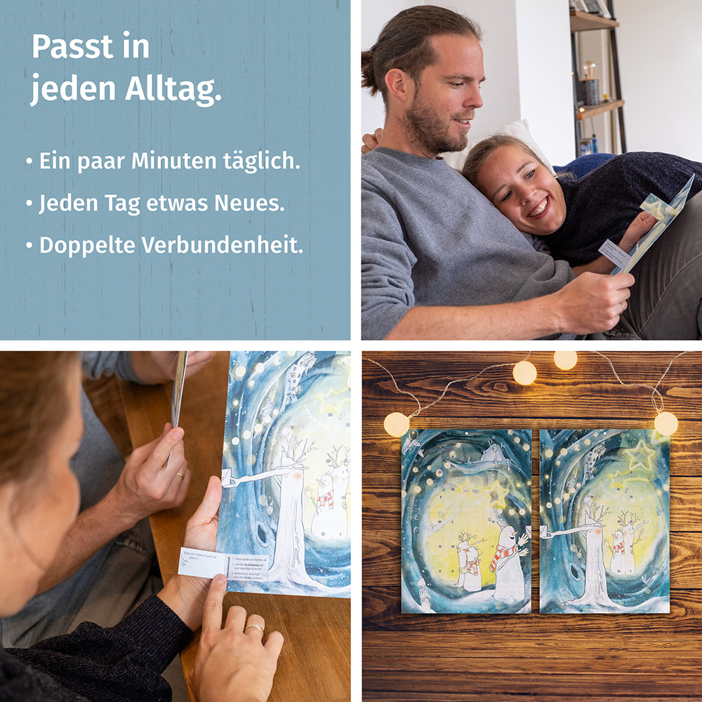 In diesem Adventskalender findet ihr täglich alles, was ihr für ein paar gemeinsame Minuten braucht.
