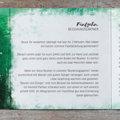 Alle 24 Paarzeit-Karten sind gleich aufgebaut, haben aber unterschiedliche Inhalte. Beispielhaft könnt ihr hier abtauchen und euch eine unserer Karten vollständig ansehen: